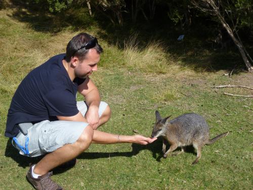 Gleich am Anfang einer der Höhepunkte. Wallabys, zu klein geratene Känguruhs, die sich total furchtlos gegen ein kleines Leckerli streicheln ließen