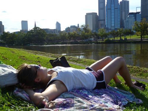 Anschließend haben wir beide unser Mittagessen in der City bei Sonnenschein und Livemusik am Federation Square zu uns genommen, bevor es für mich um halb 3 nach Hause ging um die Kids abzuholen.